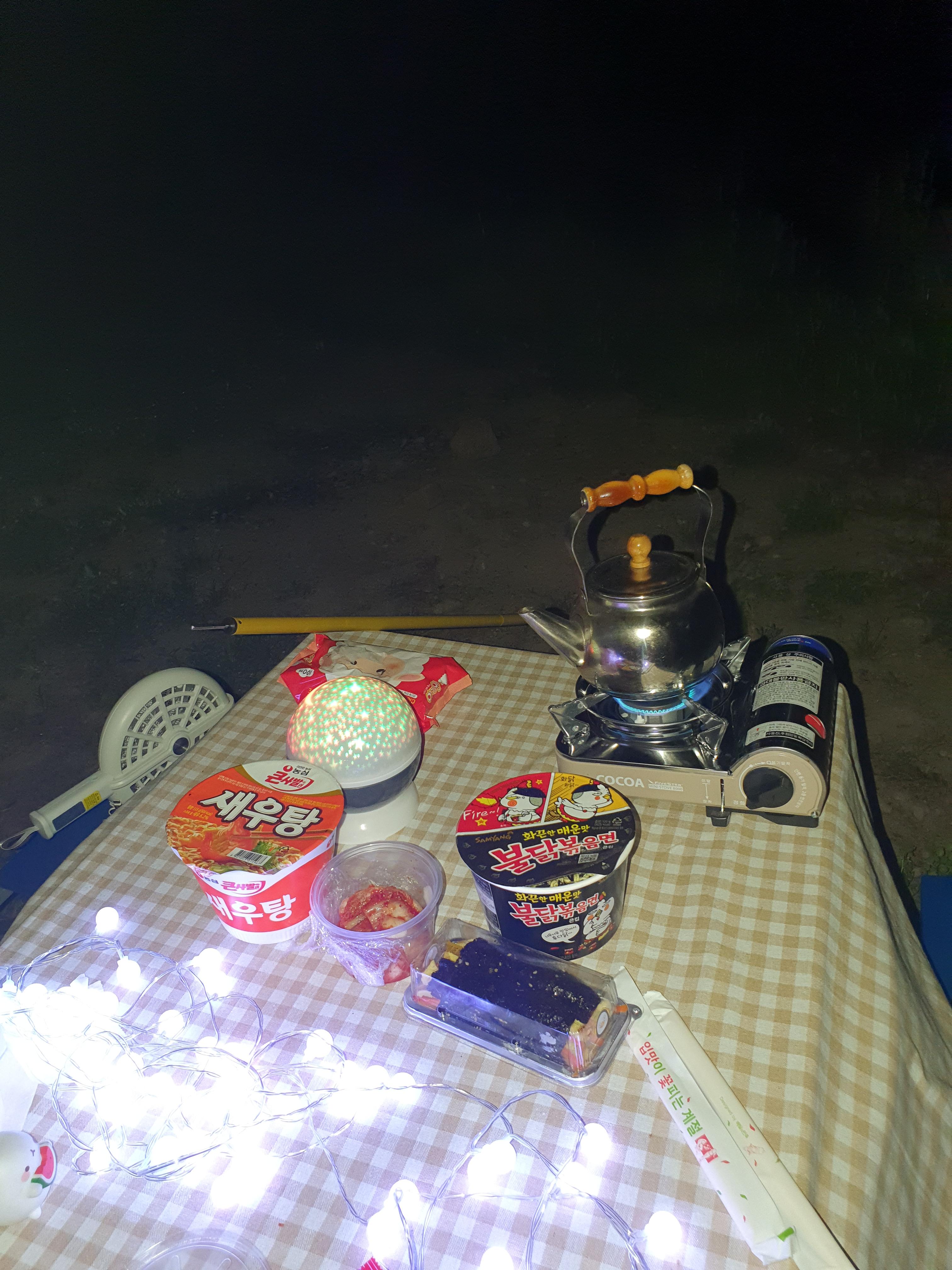 출출해서 물을 끓여서 컵라면도 끓여먹고 잠이듭니다.
