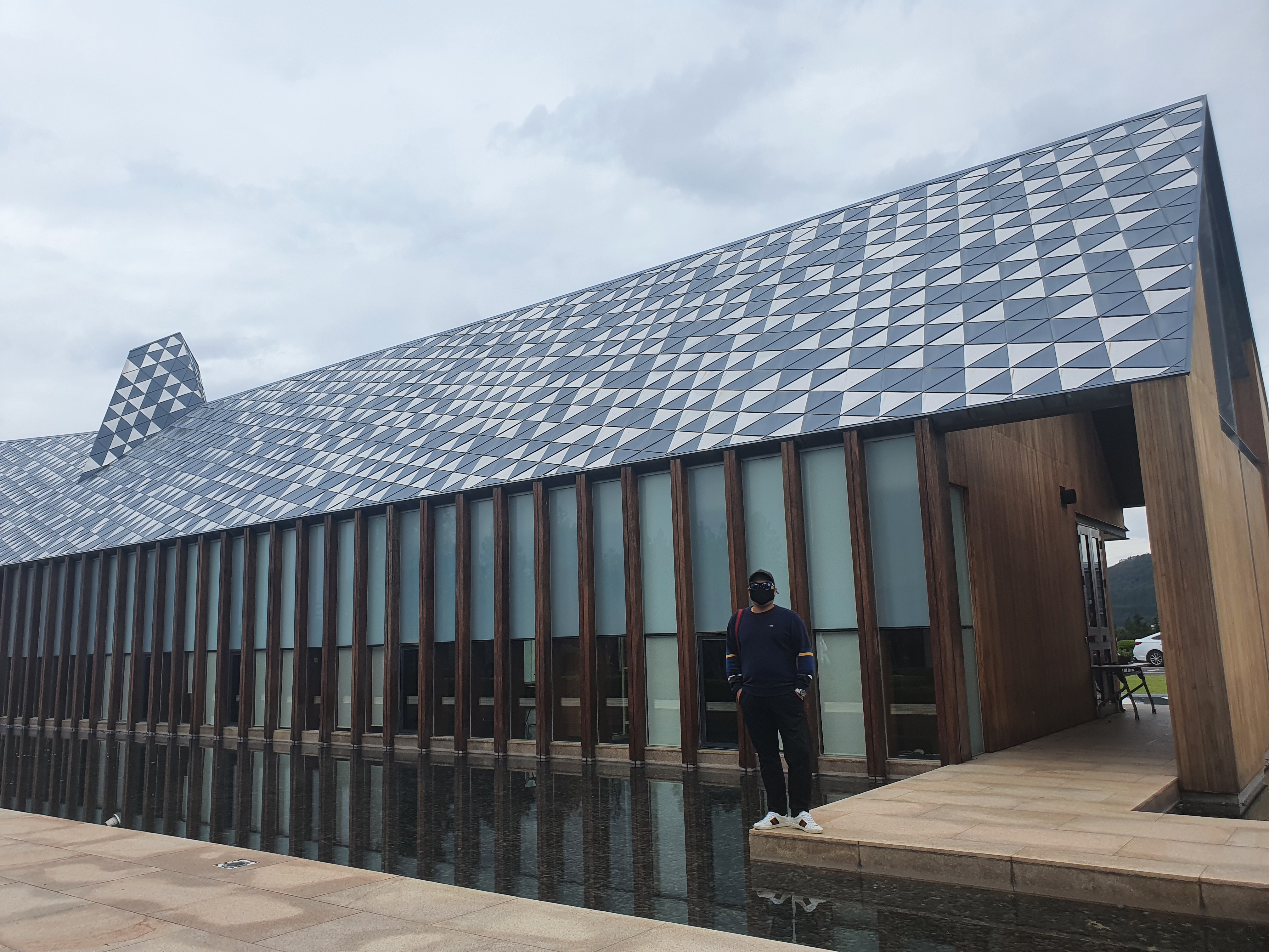 건물이 물 위에 떠 있는 듯한 느낌이 너무 아름다웠습니다.