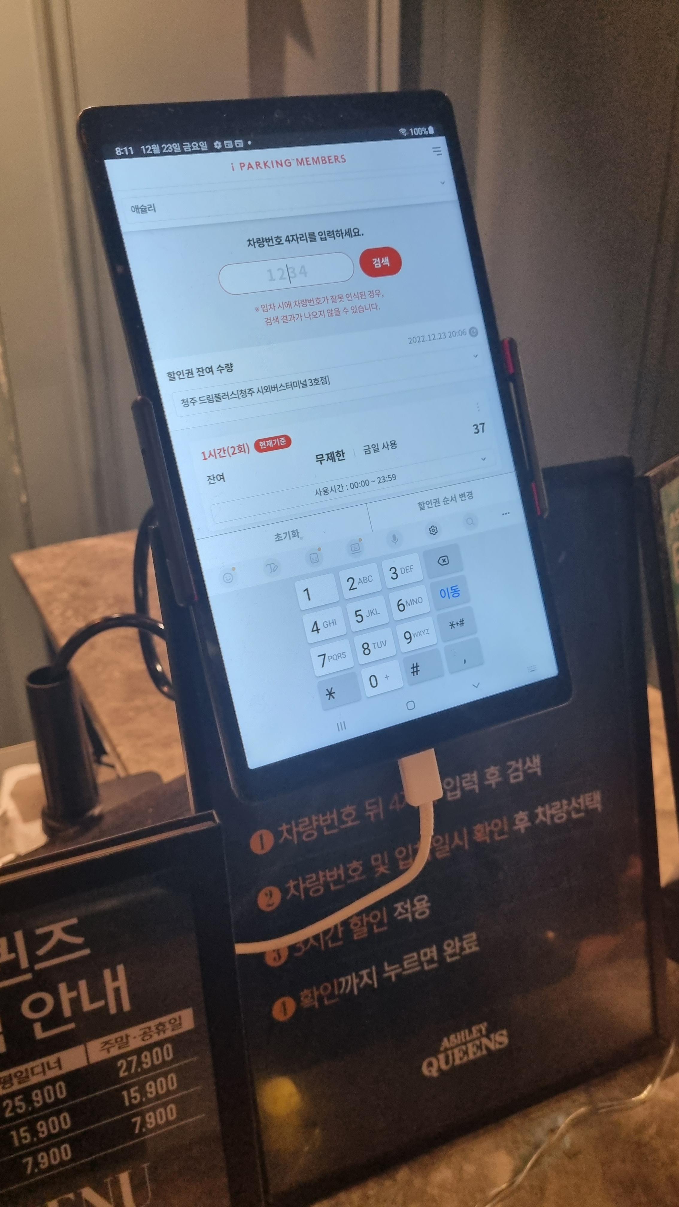 나가실 때 주차번호 입력하시는 것 잊지 마세요~~