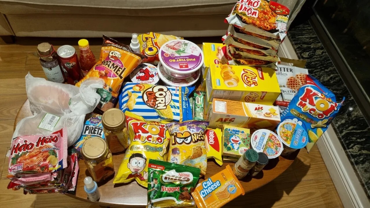 호텔가니 로비에서 기다리고 있던 롯데마트 배송상품! 일부 품절된 상품은 빼고 왔어요